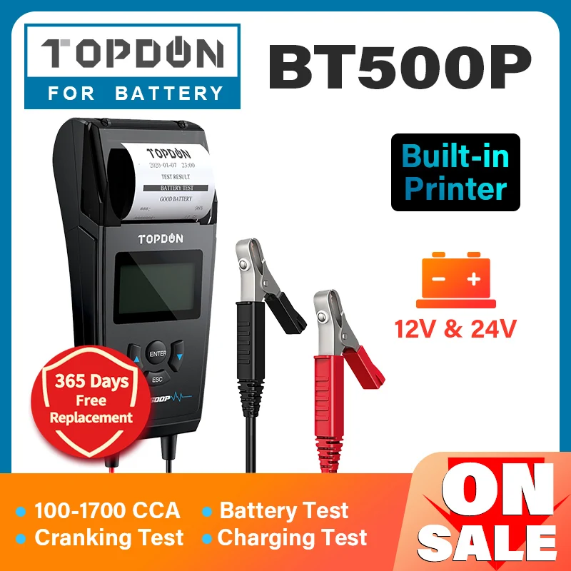 Name: TOPDON-probador de batería de coche BT500P, 12V, 24V, con prueba de carga de batería de impresora para motocicleta, Analizador de batería de arranque de carga automática